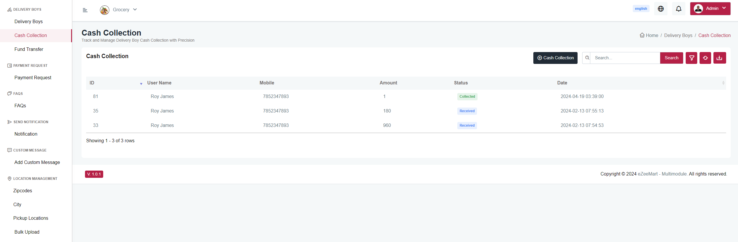 Here you can collect cash from delivery boy.
