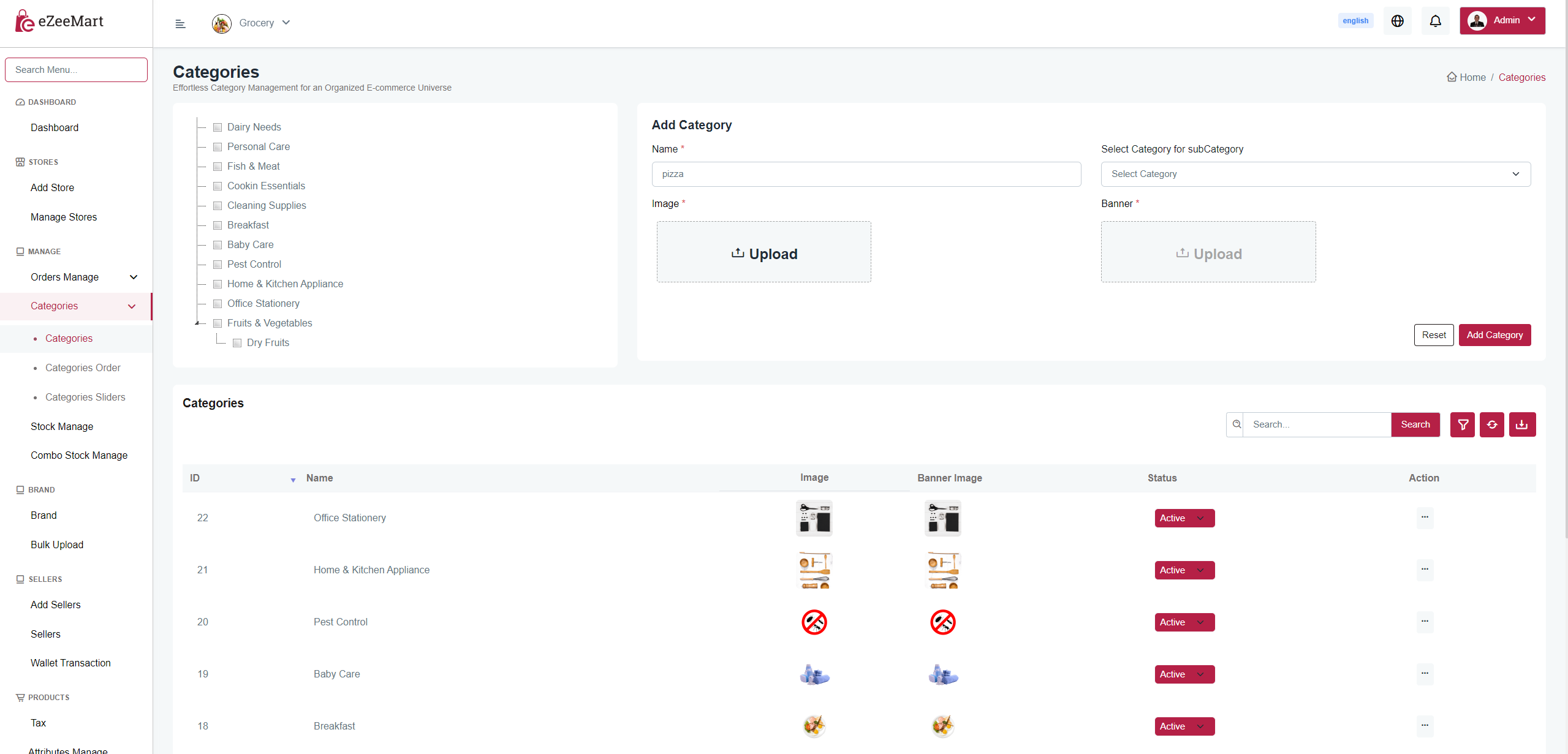 All the categories will be listed here. You can create, update and delete categories from here.