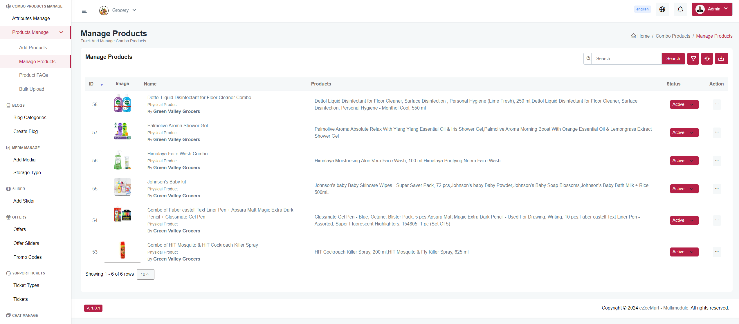 You can add, update and delete Products from here