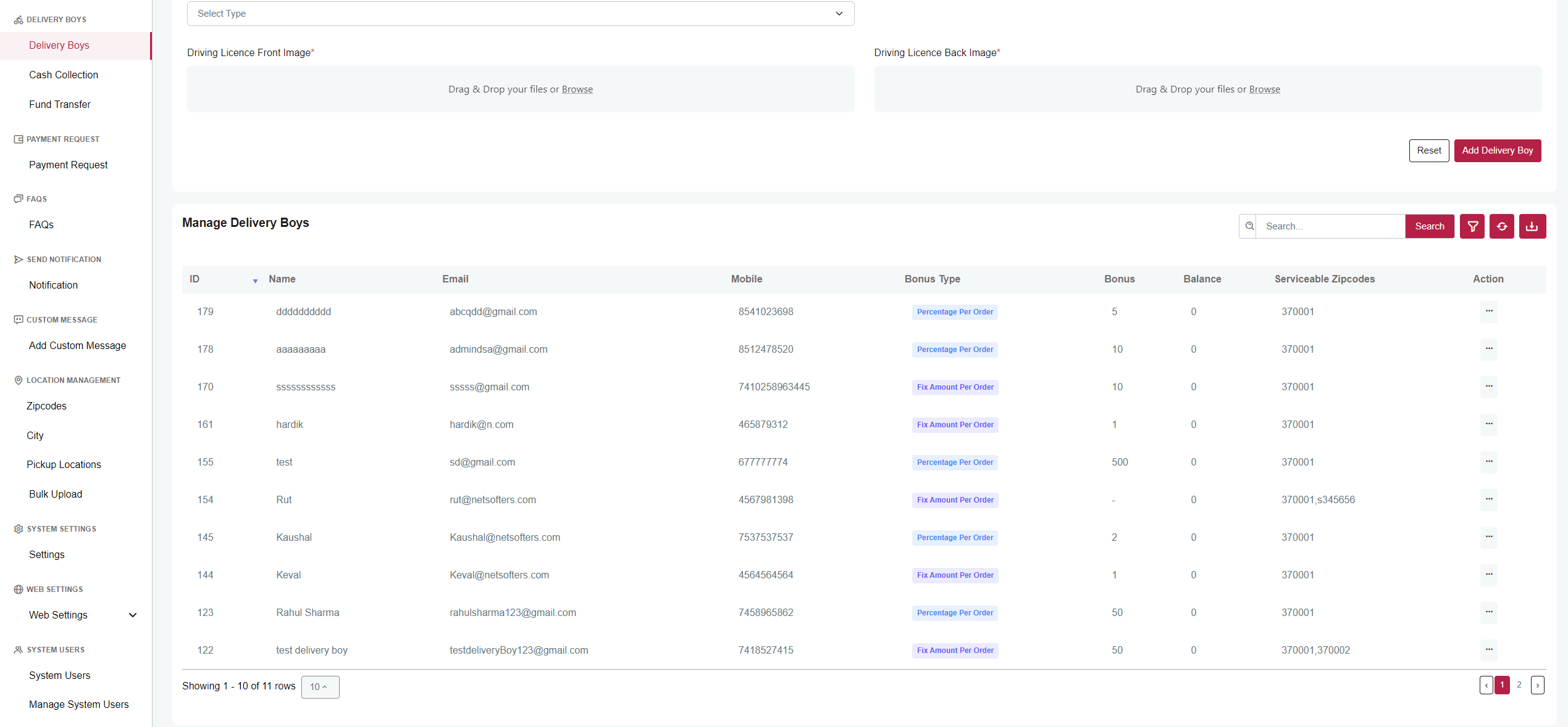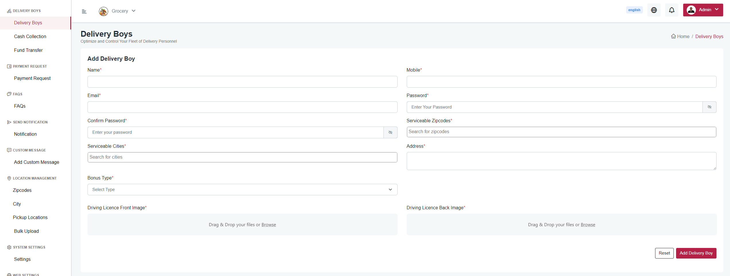 Here you can Add, View, Edit & Delete delivery boys.