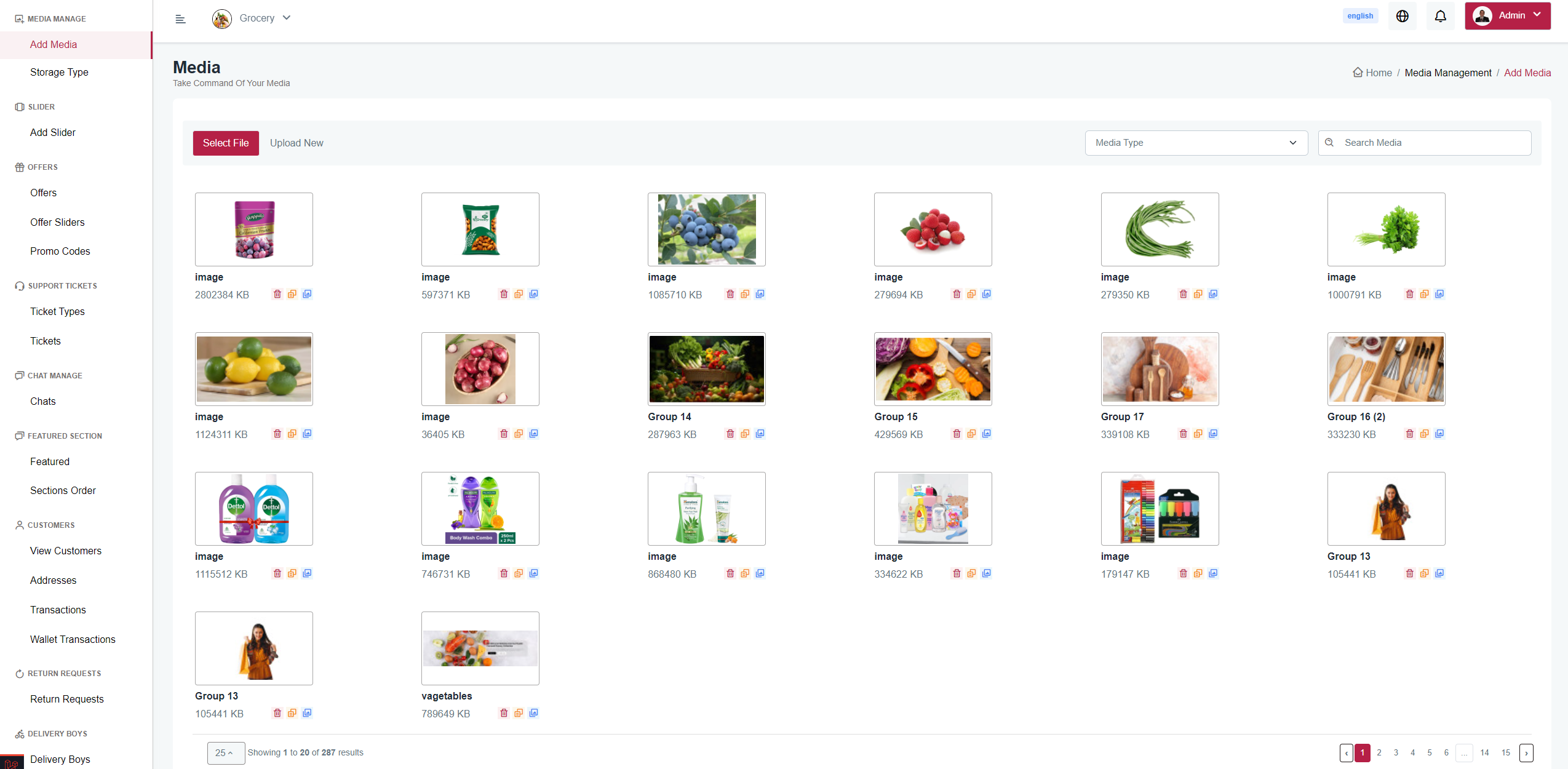 Here you can upload and delete your system's media.
