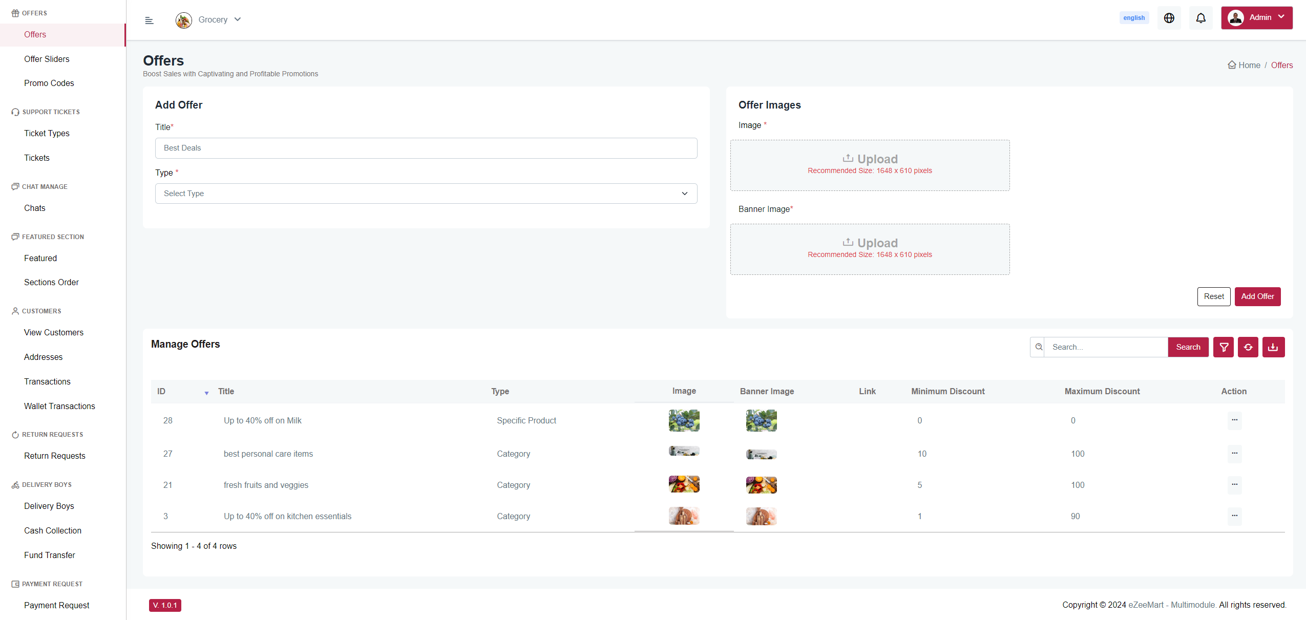 Here, you can create offer images categorized by product,categories, brand, specific product,combo products, and offer URL
