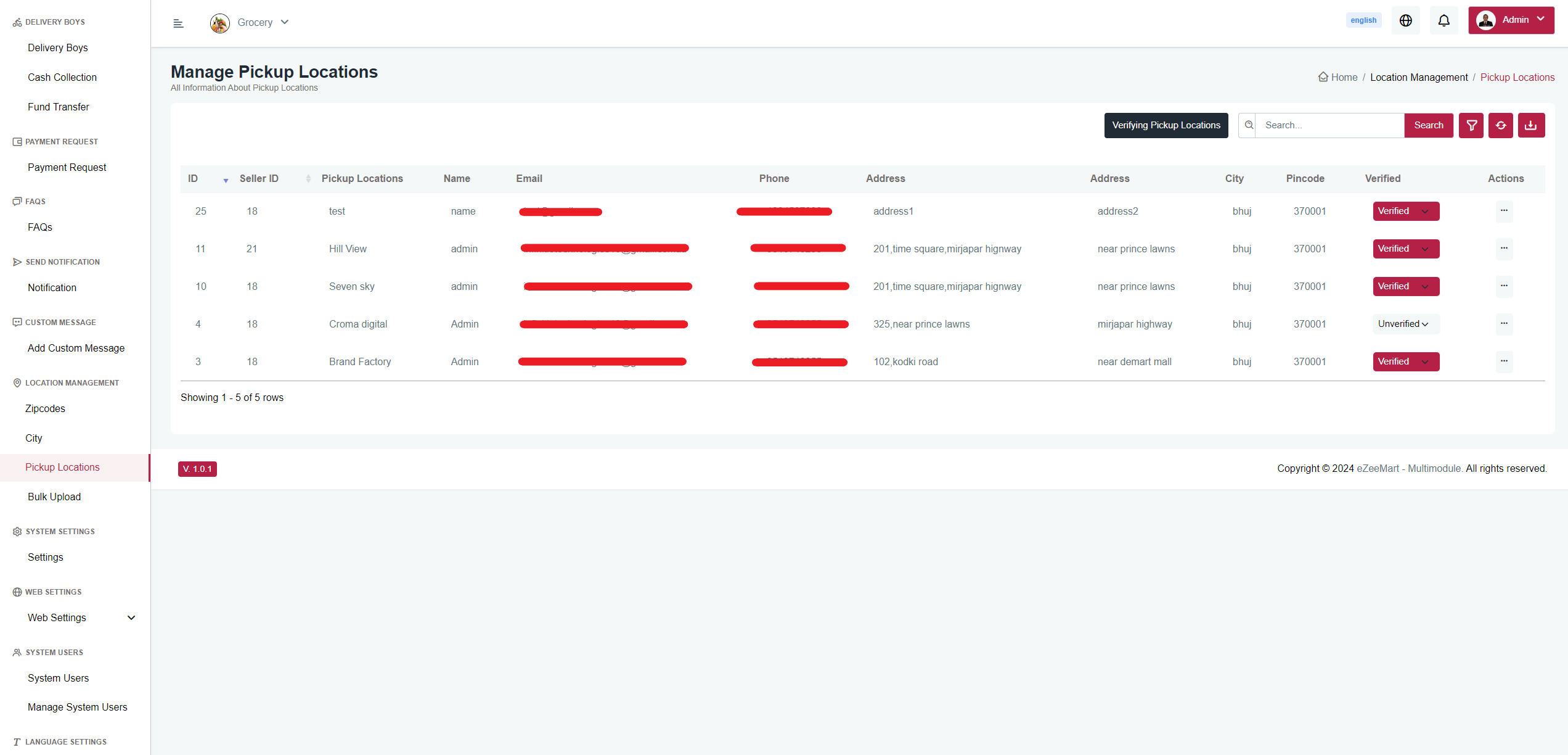 Here,You can edit or delete and varify pickup location