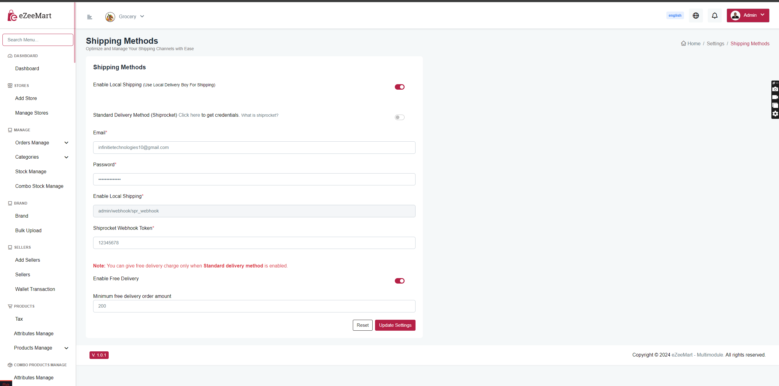 Shipping Methods Settings