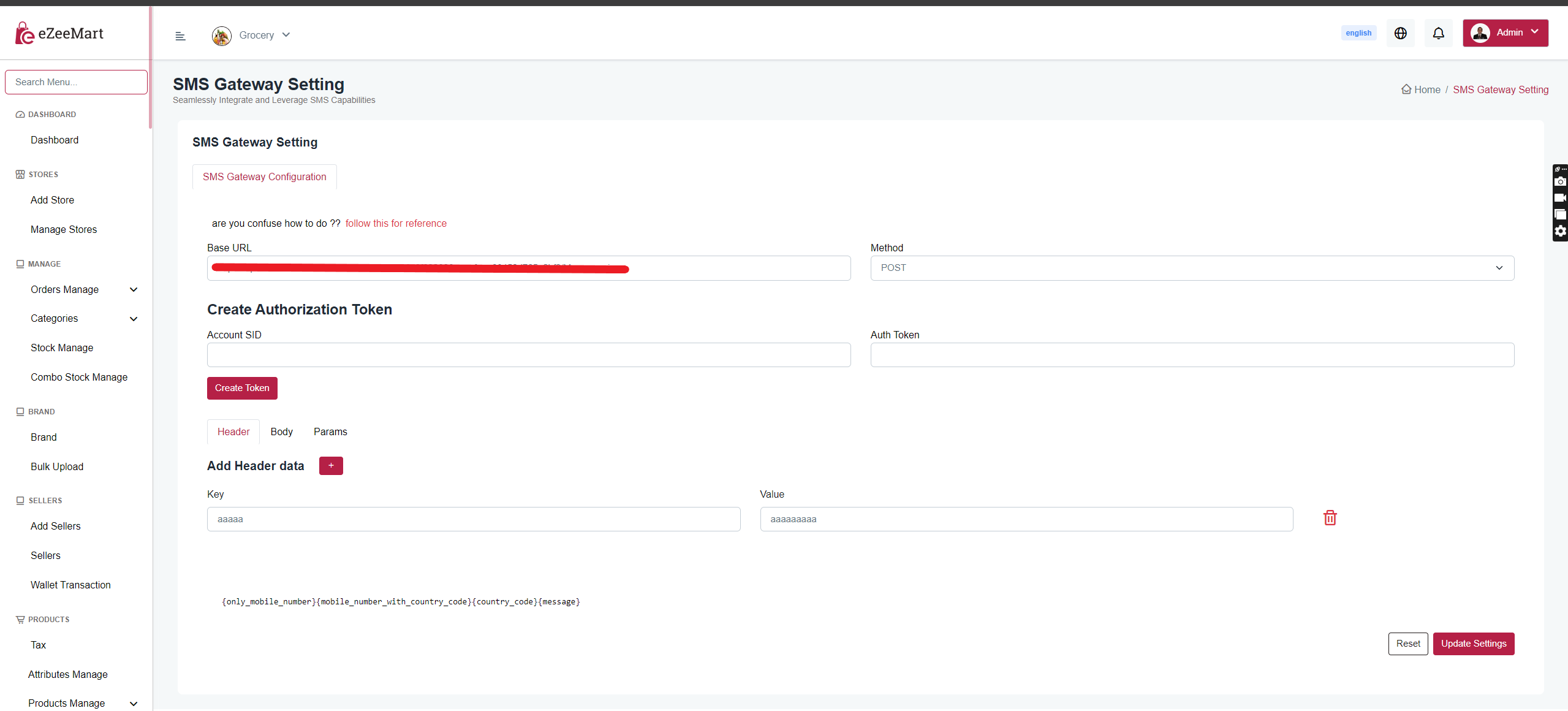 Here, you can set dynamic sms gateway settings.