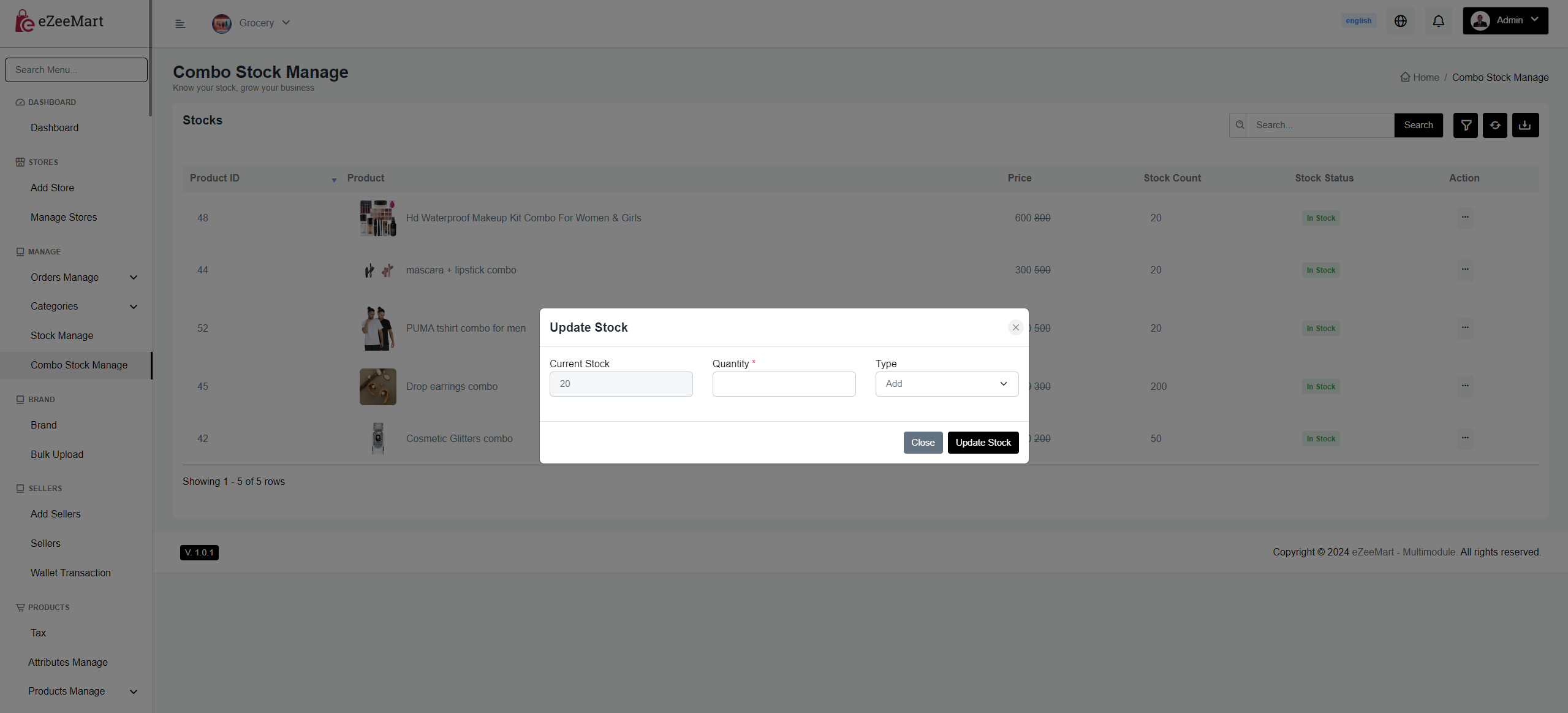 You can update your combo products stock.